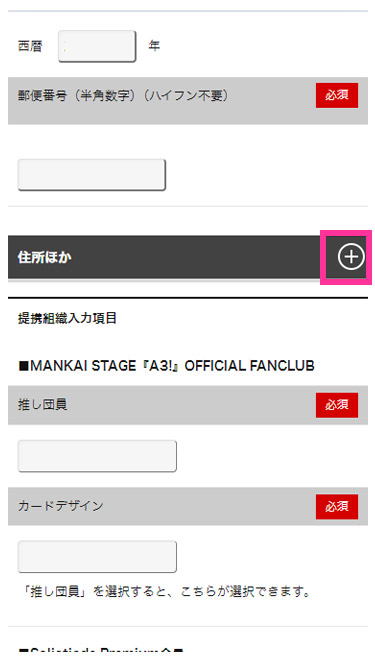 2. ログイン後ページ中段の「住所ほか」項目の「+」ボタンをタップ(クリック)