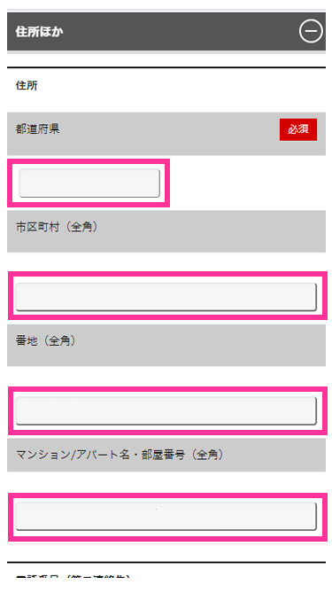 3. 住所項目をご確認、ご記入ください